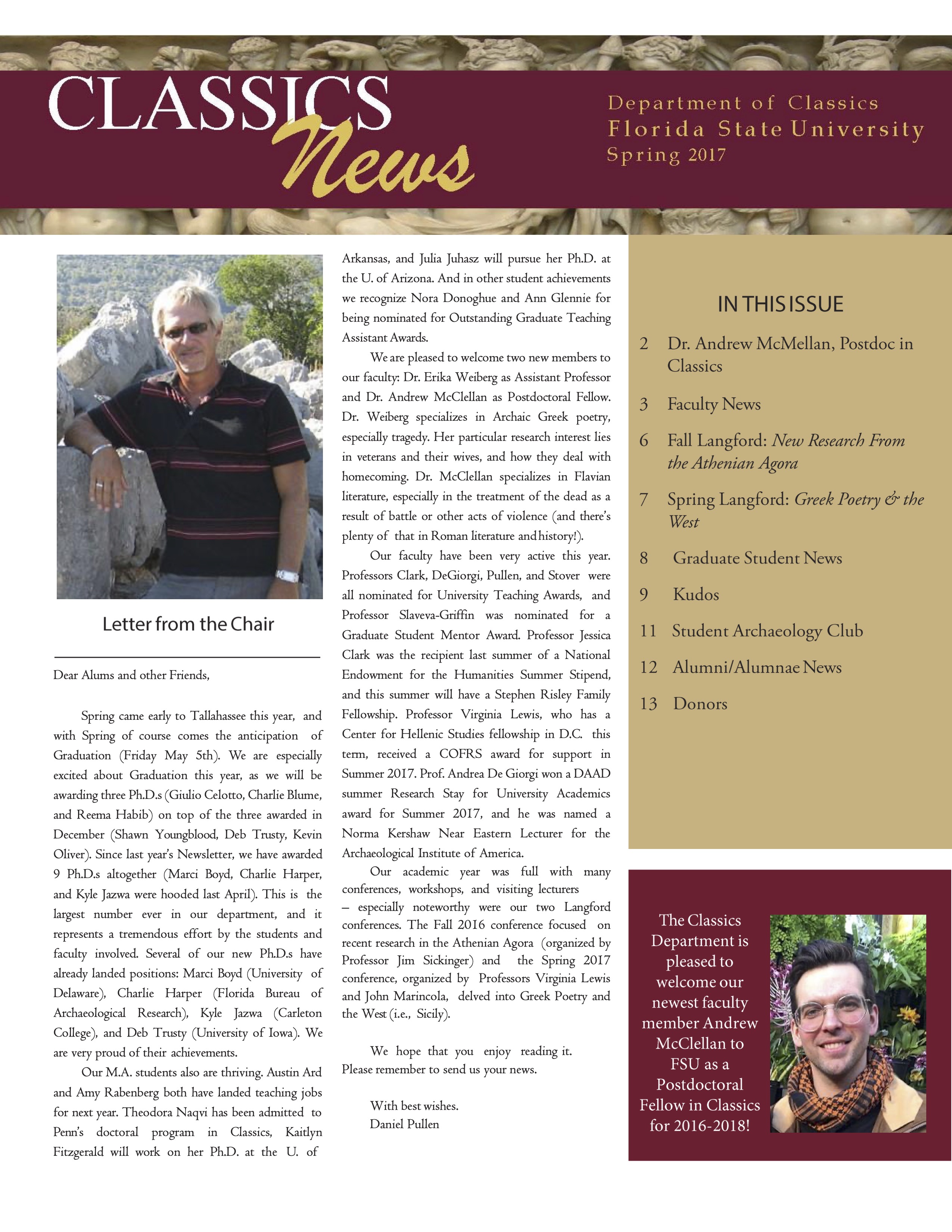 The Department of Classics sends heartfelt congratulations to the graduate students on successfully completing their degrees.